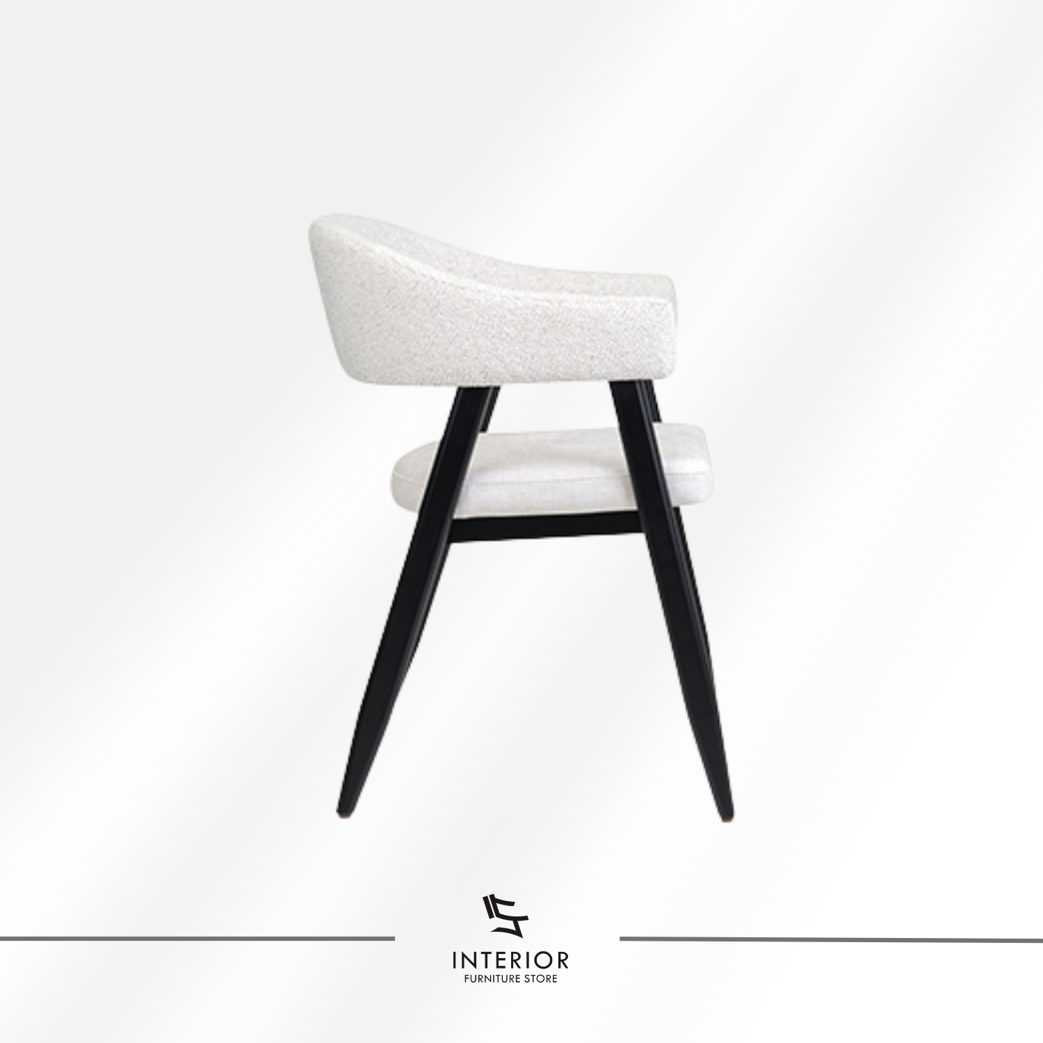 This modern upholstered dining chair features a softly sculpted wraparound backrest that provides comfortable support and an inviting silhouette. Textured light fabric upholstery blends smoothly with the solid wood frame. The contrasting dark wood finish adds a refined, contemporary touch. Gently tapered wooden legs improve stability and give the chair a sleek, architectural feel. Designed for modern, Scandinavian, Japandi, and contemporary interiors, this chair balances comfort and craftsmanship. It fits beautifully in dining rooms, cafés, and stylish hospitality spaces.