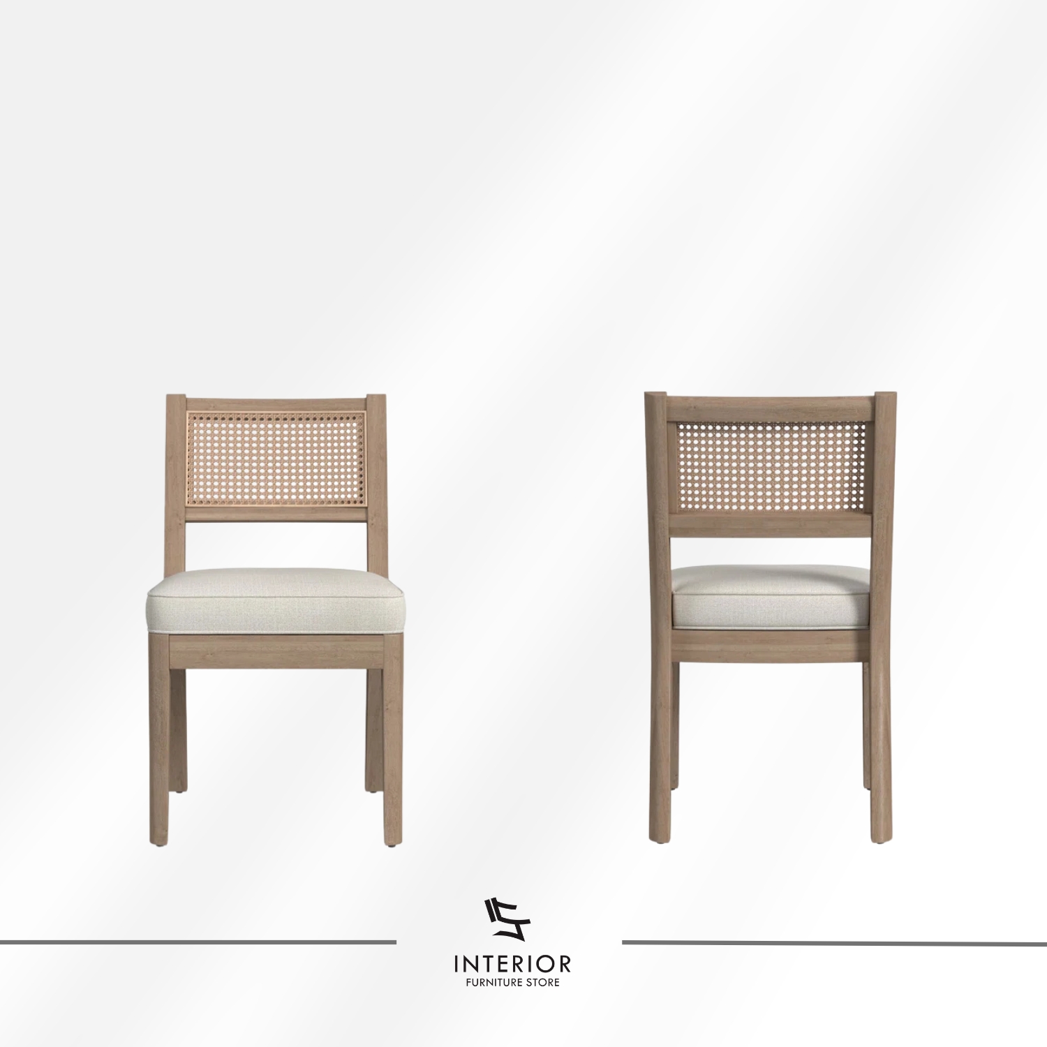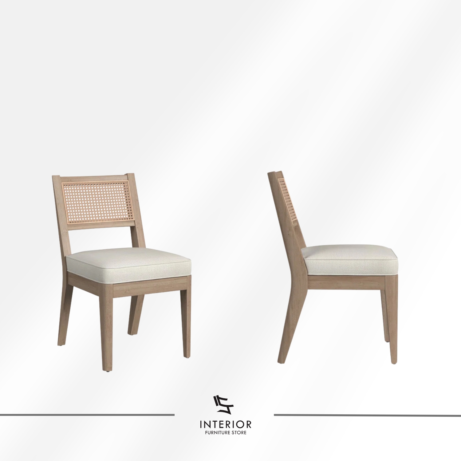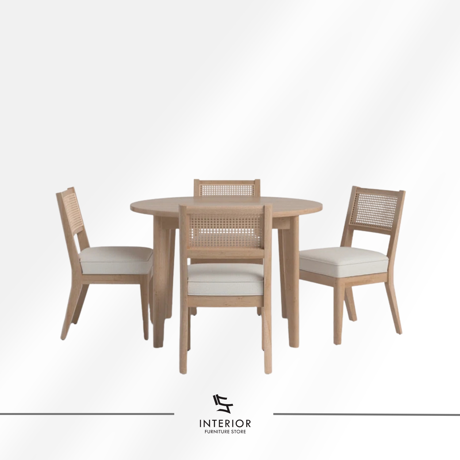 Avari Dining Table Set features a round tabletop that creates a warm and intimate dining experience. Solid wood construction highlights natural grain patterns and soft tones. The sturdy base provides strong support and long-lasting durability. The rounded shape improves flow and makes the space feel more inviting. Each chair includes a woven rattan backrest that adds a light and breathable texture. Cushioned seats provide comfort for daily dining and longer gatherings. This dining set works well in dining rooms, apartments, and hospitality spaces. Its design fits Japandi, Scandinavian, and minimalist interiors. We produce Avari by order, so you can customize the finishing and configuration to match your interior concept.
