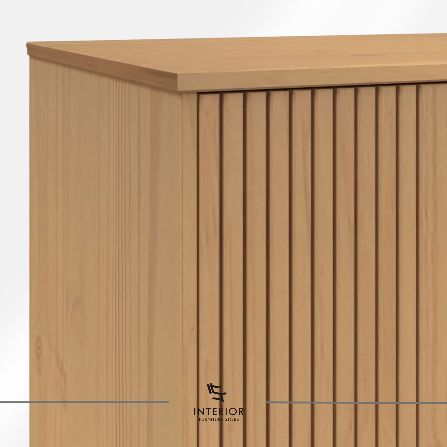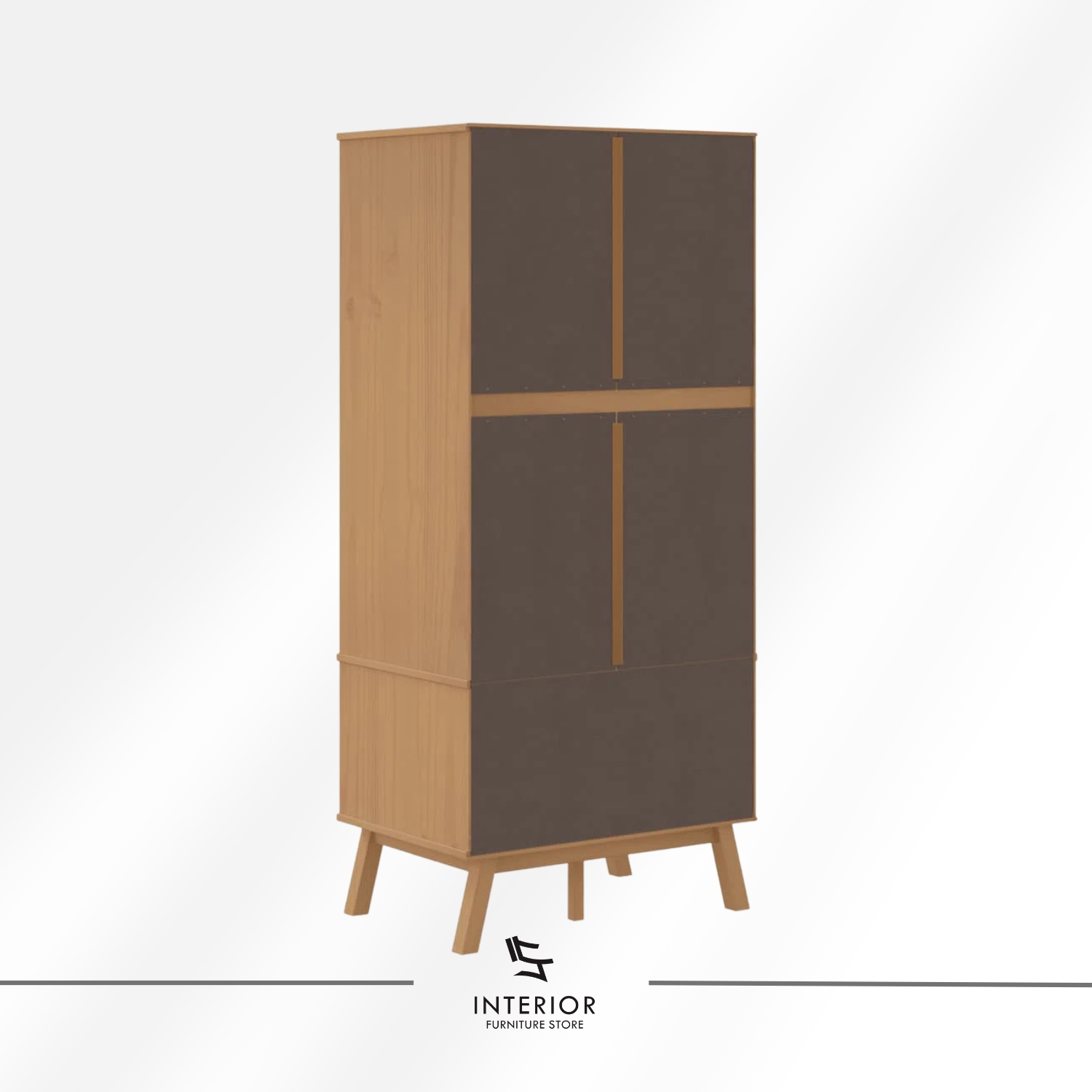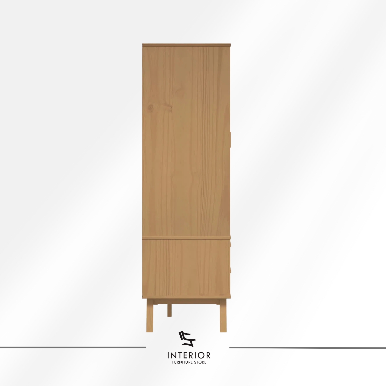 This Scandinavian-style wardrobe showcases a clean, functional design with a warm natural wood finish that brings lightness and balance to the room. Vertical slatted details on the doors add subtle texture and visual rhythm, while maintaining a calm, minimalist appearance. The upper cabinet offers practical hanging and shelving storage, complemented by lower drawers that provide additional space for folded clothing and essentials. Elevated on gently tapered wooden legs, the wardrobe feels light and well-proportioned, enhancing airflow and visual openness. Blending simplicity, craftsmanship, and everyday functionality, this wardrobe is ideal for modern Scandinavian, Japandi, and contemporary interiors.