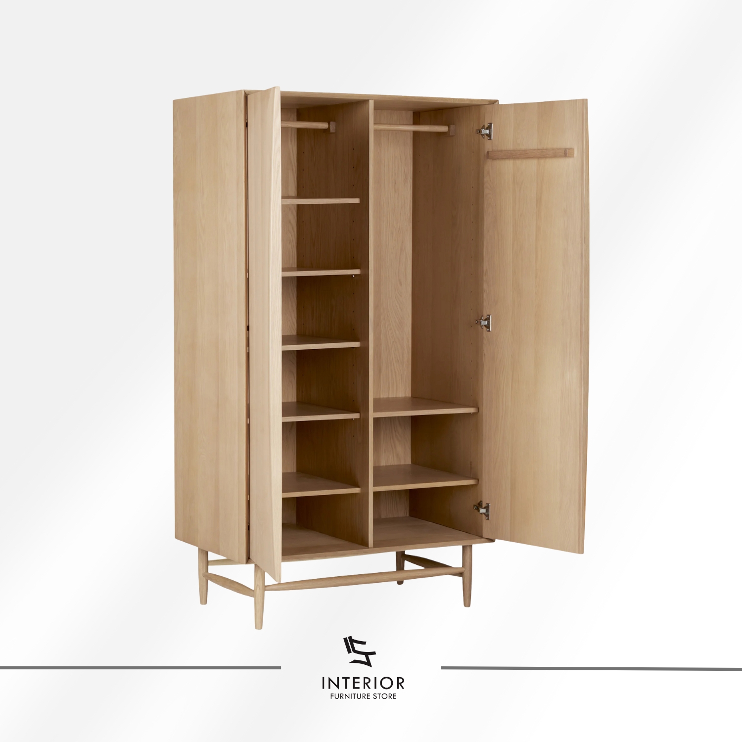 This Scandinavian wooden wardrobe features a clean, minimalist silhouette crafted from natural solid wood. Soft wood grain tones bring warmth and calm into the bedroom. The tall double-door design offers generous storage for hanging clothes and folded essentials. Elevated wooden legs create a lighter visual presence and improve airflow beneath the cabinet. Subtle recessed door details replace traditional handles and keep the look refined and uncluttered. Blending modern Scandinavian style with timeless craftsmanship, this wardrobe feels elegant, functional, and enduring. It suits contemporary, Japandi, and modern natural interiors.
