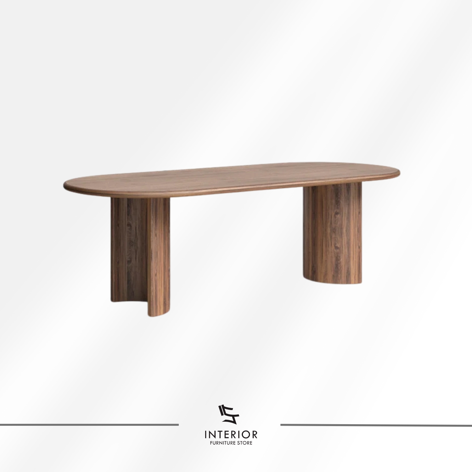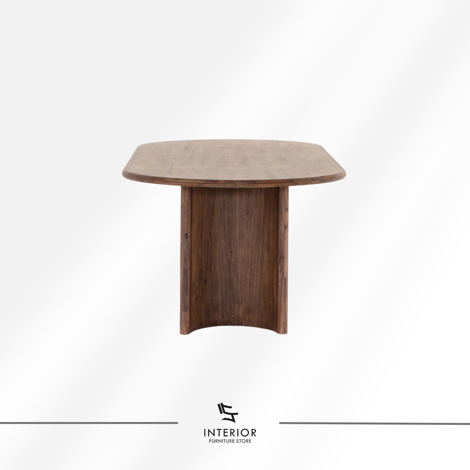A solid wood dining table with a warm, rich finish that highlights the natural depth of the wood grain. The softly rounded tabletop is paired with sculptural curved legs, creating a balanced silhouette that feels sturdy, refined, and timeless in any dining space.