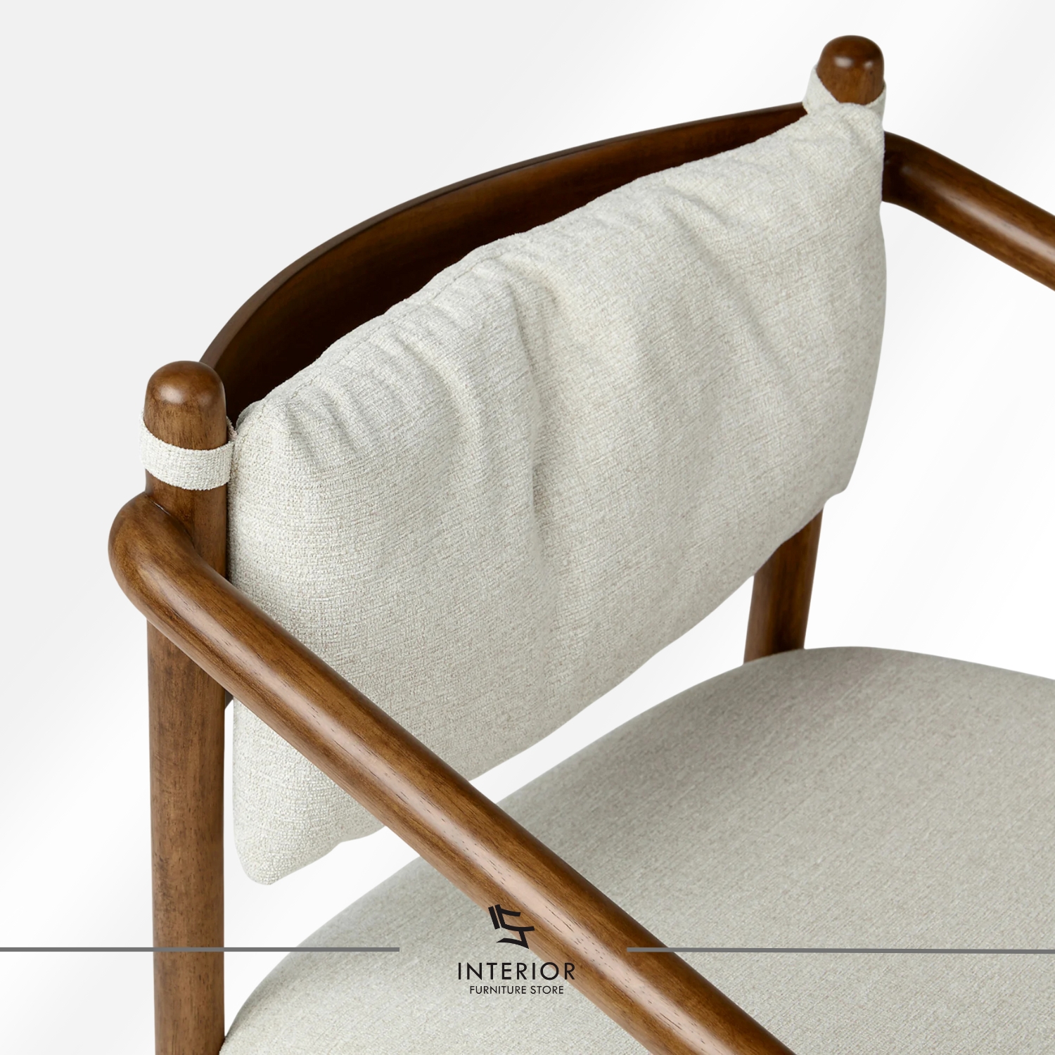The Manggala Lounge Chair features a rich, walnut-stained wood frame and comfortable padded seat. The curved silhouette adds suave, while the light and airy fabric keeps the look grounded. Imagine it in a peaceful corner of your bedroom with the sunlight streaming in, or as a lux place to tie your shoes in the morning. Wherever you need it, the Manggala fits right in.